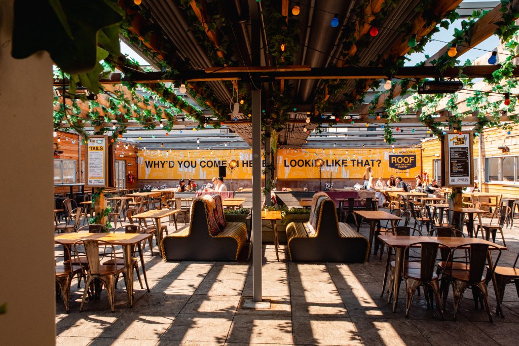 Looking for a rooftop bar in Liverpool city centre? The Roof at PINS Social Club here on Duke Street is one of Liverpool’s biggest rooftop bars — a certified sun-trap serving cocktails, food and live entertainment when the weather calls for it. Perfect for group drinks, spontaneous afternoons and sun-soaked evenings in the heart of the city.